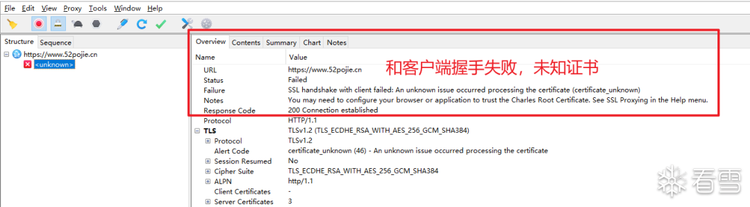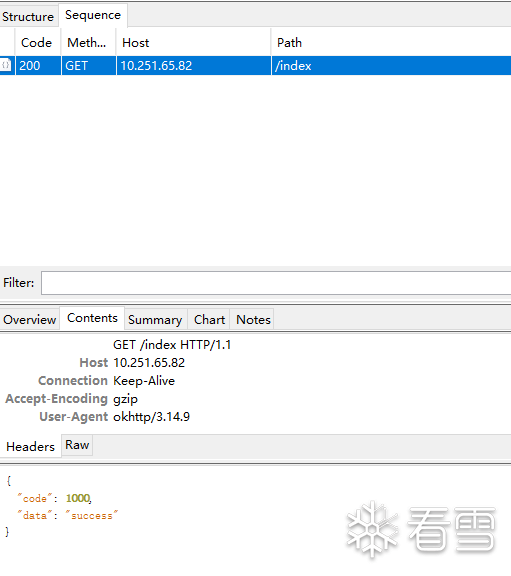 private void doRequest(){new Thread(){@Overridepublic void run() {final String CA_PUBLIC_KEY = "sha256/kO7OP94daK9P8+X52s00RvJLU0SiCXA9KAg9PelfwIw=";final String CA_DOMAIN = "www.52pojie.cn";//校验公钥CertificatePinner buildPinner = new CertificatePinner.Builder().add(CA_DOMAIN, CA_PUBLIC_KEY).build();OkHttpClient client = new OkHttpClient.Builder().certificatePinner(buildPinner).build();Request req = new Request.Builder().url("https://www.52pojie.cn/forum.php").build();Call call = client.newCall(req);try {Response res = call.execute();Log.e("请求成功", "状态码:" + res.code());} catch (IOException e) {e.printStackTrace();Log.e("请求失败", "异常" + e);}}}.start();}