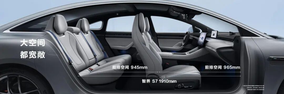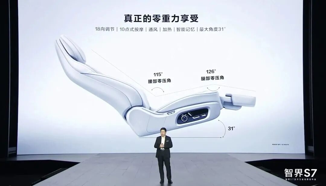 近 5 米的车长,近 3 米的轴距,近 2 米的车宽,智界 S7 的尺寸完全达到,甚至超过了一辆传统行政级轿车的水平。但和行政级轿车的代表 —— 奔驰 E 级和宝马 5 系相比,智界 S7 的车高更为低矮,仅有 1461mm,这对于一辆纯电轿车来说,实属不易。再配合浑然一体的 One-Box 车身造型,整车实现了 0.203Cd 的超低风阻。论外造型,华为显然已经吸取了问界 M7 撞脸东风风光 iX7 的教训,智界 S7 有着非常强的设计原创性,与「同父异母」的奇瑞星途星纪元并不相像。上为 AITO 问界 M7,下为东风风光 ix7,图片来自:皆电智界 S7 采用华为智选车全新家族化设计,特征化最为明显的是它的大灯,华为将灯组与风刀、侧进气帘等部件融入同一元素,围绕居于视觉重心的水平线,延展出半开放式的弧形翼状轮廓。而在功能上,智界 S7 的超广角照明系统将前方 5 米的大灯照射宽度从 25 米宽提升到了 50 米,但具体照度,华为在发布会上并未提及。智界 S7 车身侧面水平的水切线也是新一代家族化「天际线设计」的呈现,平直贯通的水切将整个车身一分为二,结合上下分色的设计,整车视觉效果更加优雅修长,同时也为低矮的车身带来了更好的视野。发布会上,余承东着重强调了智界 S7 在视野上的优势,表示「创新游艇驾舱设计带来了超大视野」。从董车会的实际体验来看,智界 S7 的视野确实颇为可观。在智界 S7 上,华为将前盖后端的最高点(C 点)前移,使得驾驶员的视野更为开阔,前盖左右两端的隆起,也能方便驾驶员在窄路通行时把握距离。智界 S7 座舱的通透感,也来自于低矮且平整的仪表台,远置的 12.3 英寸仪表屏更加贴近驾驶视线,手感饱满的橄榄形方向盘不会对其造成遮挡。更为重要的是,与特斯拉的 Yoke 方向盘不同,华为保留了方向盘的上沿,新方向盘并未对驾驶造成影响。在月初举办的智界 S7 预售发布会上,余承东称智界 S7 的仪表台还可以在需要移动办公时「秒变」工作台,副驾侧可以放置笔记本电脑进行操作,若是华为品牌的笔记本电脑,还可与车内的鸿蒙座舱进行互联。但从实际体验来看,只有笔记本和座舱间的互联体验差强人意,而将笔记本置于仪表台的操作并不实际,对于有移动办公需求的打工人来说,笔记本还是放在腿上比较好。零重力座椅一直都是华为的拿手好戏,早在 2022 年,华为就将这一配置带到问界 M7 里,随后,车圈便掀起了一股「零重力座椅风」。只是,虽说各家都标榜「零重力」,但各家之间还是存在不小的区别,而华为的零重力座椅,总是要舒服些。智界 S7 副驾的零重力座椅支持一键悬浮,四向电动腿托长度达到 280mm,最大可调节范围达 61°,座椅共可进行 18 向调节和 10 点式按摩,常规的通风加热自然也没有缺席。更为关键的是躺姿。进入零重力模式后,坐垫前端上抬,身体的重量均匀分布于背部、臀部,以及腿部,姿势更加放松。很明显,智界 S7 十分看重座椅的舒适性,这一点在后排亦有体现。智界 S7 的后排座椅宽大且厚重,高度和座椅柔软度恰到好处,华为称之为「丝云座椅」。另外别看它车矮,座椅高度和腿部空间堪比 AION S,那可是网约车世界里的王者。再加上全平的地板、手边的控制按钮和可拓展的后排屏幕,智界 S7 的后排表现属实亮眼。只是,开起来之后你就会发现,智界 S7 达不到行政级轿车的水平。先说配置。智界 S7 配备自适应空气悬架系统,采用 CDC 电控减振系统和空气悬架系统,华为还为它加入了道路预瞄功能,能够通过前置摄像头和雷达对路面进行实时扫描,提前将 150 米内的路况信息传递到 ECU,并对 CDC 的阻尼进行动态调节。华为表示,在这套系统的协同配合下,智界 S7 能够减少 15%的路面冲击,另外还能通过 DATS 动态扭矩调节和自适应滑移率控制前后扭矩转移,让平顺性提升 40%。在经过减速带、颠簸路面时保证平稳舒适。但在上周的试驾中,智界 S7 给人的感觉并非如此,底盘的滤震表现并没有达到行政级轿车的水平,反而更像一辆运动型轿车,悬挂硬朗,震动传递直接,噪声隔绝也较为一般。不过,从另一个角度看,倘若你对驾驶有着些许要求,智界 S7 也能够给你提供一定的运动感。在「运动+」模式下,仪表可以显示 G 值、瞬时电耗、输出功率、扭矩和前后轮动力分配比,为你带来多维度的车辆信息。另一方面,智界 S7 还加入了带有实用主义的主动声浪。在传统的赛车和性能车领域,驾驶员往往会结合发动机声音和变速箱档位来估算车速 —— 智界 S7 的主动声浪也可以起到类似的作用。相较于目前大部分新能源纯电车型的模拟声浪拟真性较差、听感浮夸、电子味重,智界 S7 的主动声浪能够做到一定程度上的「闻声识速」。动力系统方面,智界 S7 搭载全新一代 HUAWEI DriveONE 800V 碳化硅平台,总功率 365kW,扭矩 679N·m,官方零百加速时间为 3.3 秒。Brembo 四活塞卡钳、打孔刹车盘配合米其林 PS EV,带来的 100-0km/h 制动距离为 33.5 米。总之,虽然坐起来一般,但智界 S7 是一辆开起来不错的中大型轿车。AEB 只是个小 case,a piece of cake。(小菜一碟)