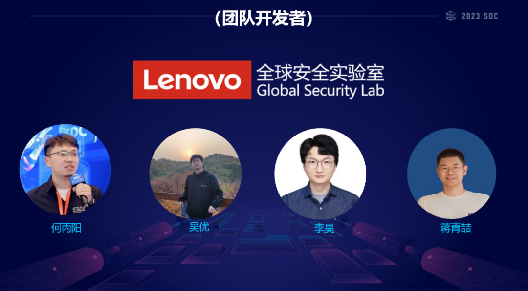 大家好,我是吴优。大家好,我是何丙阳。我们来自联想全球安全实验室,很高兴能够在这里为大家分享我们在USB FUZZ道路上一些研究成果、方法及思路,希望可以为大家在USB FUZZ上带来一些小小的帮助。参与本次工具开发的共有4个人,均来自于联想全球安全实验室,接下来我将分为三部分来分享本次议题。一是我们开发USB