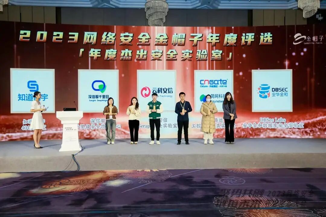 获得年度杰出安全实验室的分别是:知道创宇404实验室、深信服千里目安全技术中心、云科安信Seraph安全实验室、科能腾达工控安全仿真实验室、DBSec Labs(安华金和数据库安全实验室)。