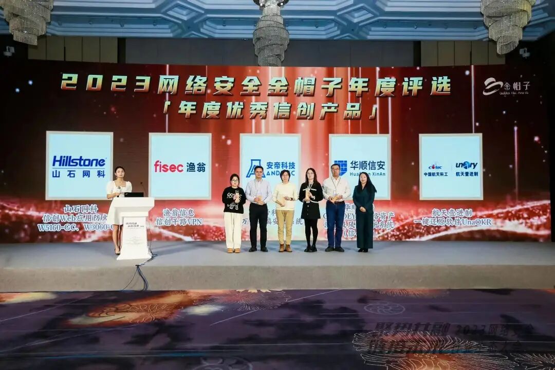荣获年度优秀信创产品的企业是:山石网科 信创Web应用防火墙 W5160-GC、W3060-GC、渔翁信息 信创干路VPN、安帝科技 万象终端安全系统、华顺信安 CIC-FOEYE-网络资产测绘及风险分析系统(信创版)、航天壹进制 一键还原软件UnaOKR。
