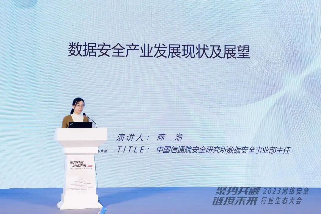 随后,中国信通院安全研究所数据安全事业部主任、高级工程师陈湉,为大家进行了《数据安全产业发展现状及展望》主题演讲,从数据安全总体形式、数据安全产业发展现状及未来展望三个部分跟大会嘉宾探讨了数据安全产业发展方向。