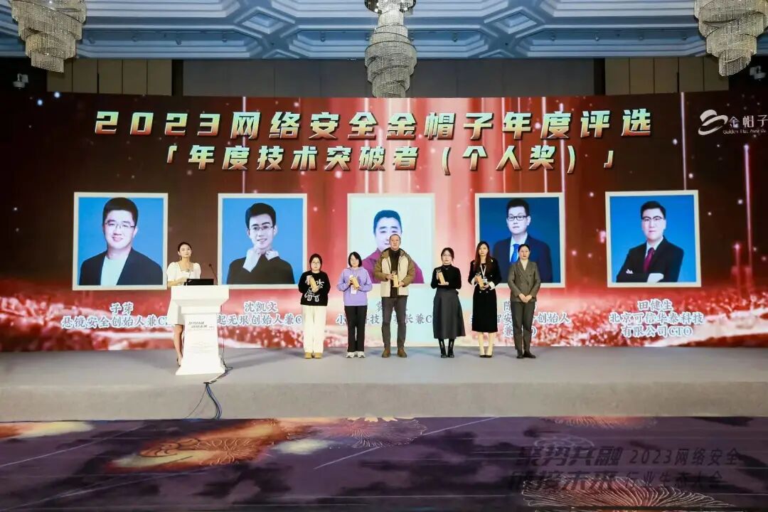 获得年度技术突破者的是:悬镜安全创始人兼CEO·子芽、云起无垠创始人兼CEO·沈凯文、小佑科技董事长兼CEO·袁曙光、未来智安联合创始人兼CTO·陈毓端、北京可信华泰科技有限公司CTO·田健生。