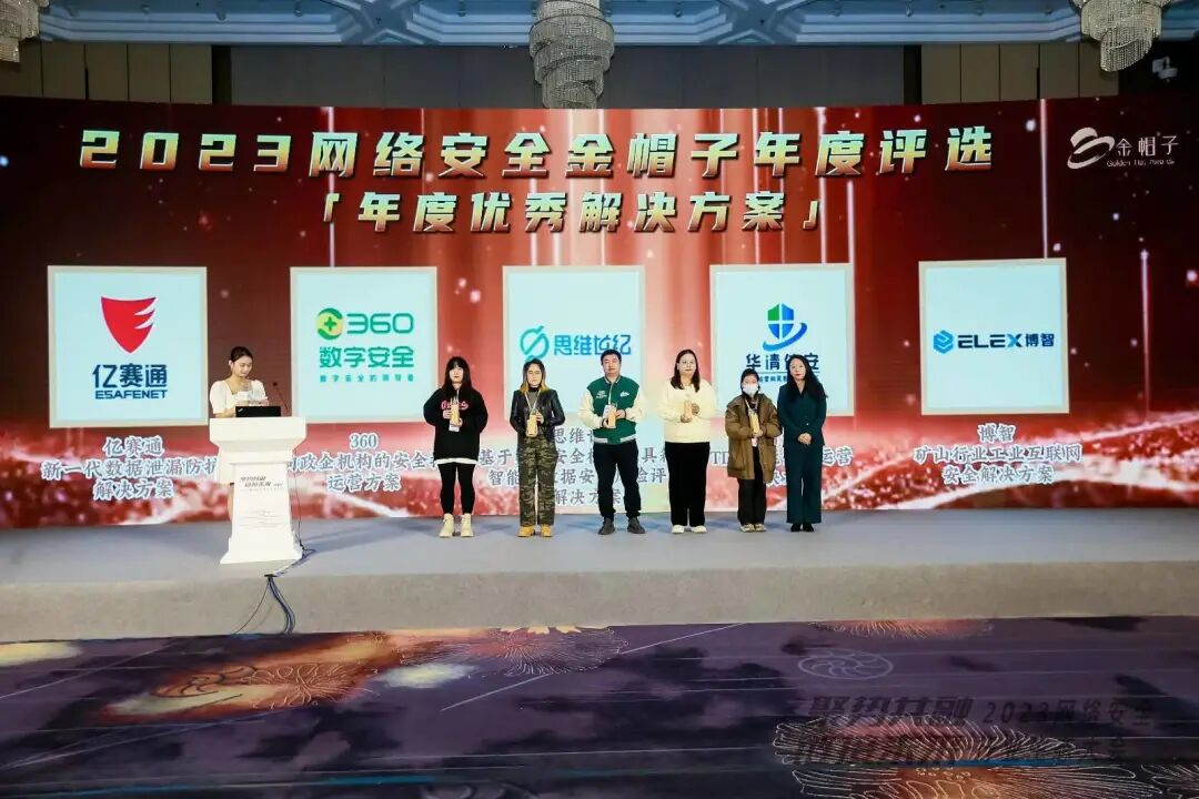 获得年度优秀解决方案的企业是:亿赛通 新一代数据泄露防护解决方案、360 面向政企机构的安全托管运营方案、思维世纪 基于数据安全检查工具箱的智能化数据安全风险评估解决方案、华清信安 TDR智能安全运营解决方案、博智 矿山行业工业互联网安全解决方案。