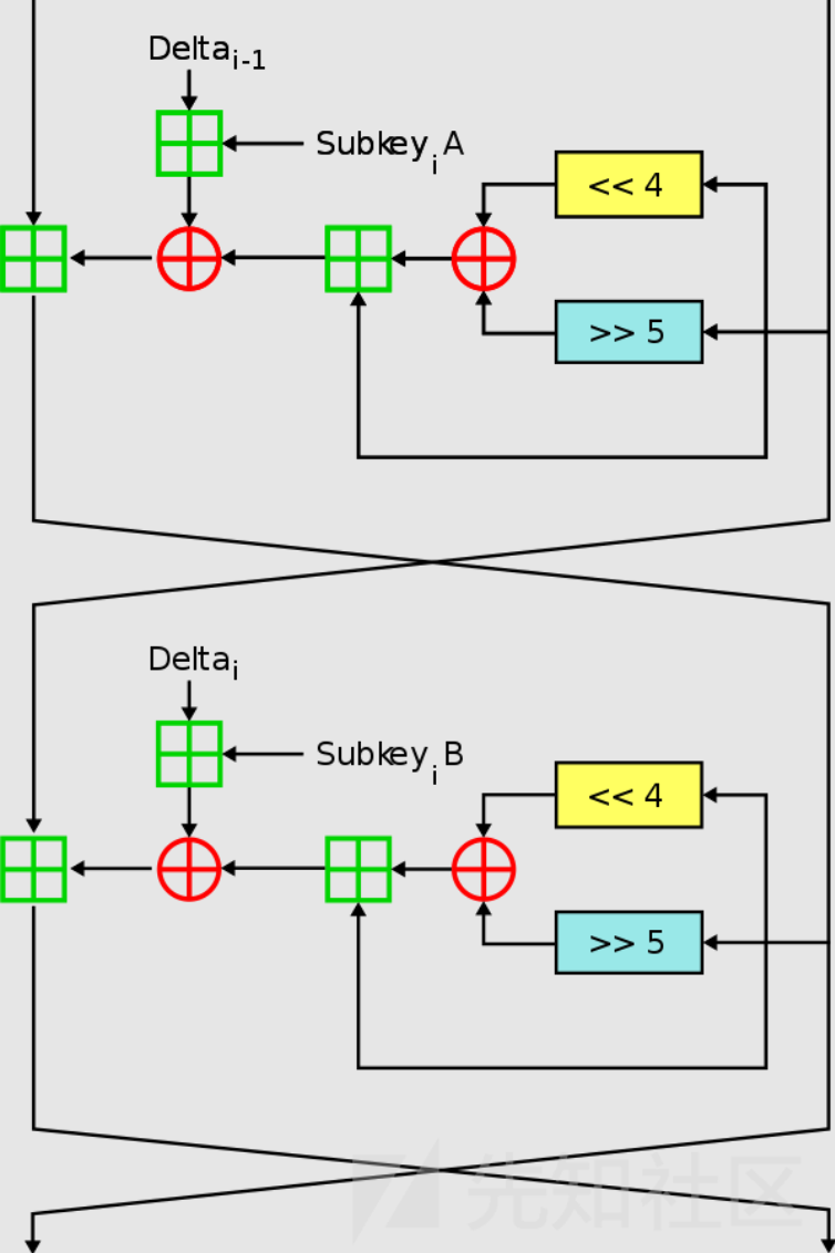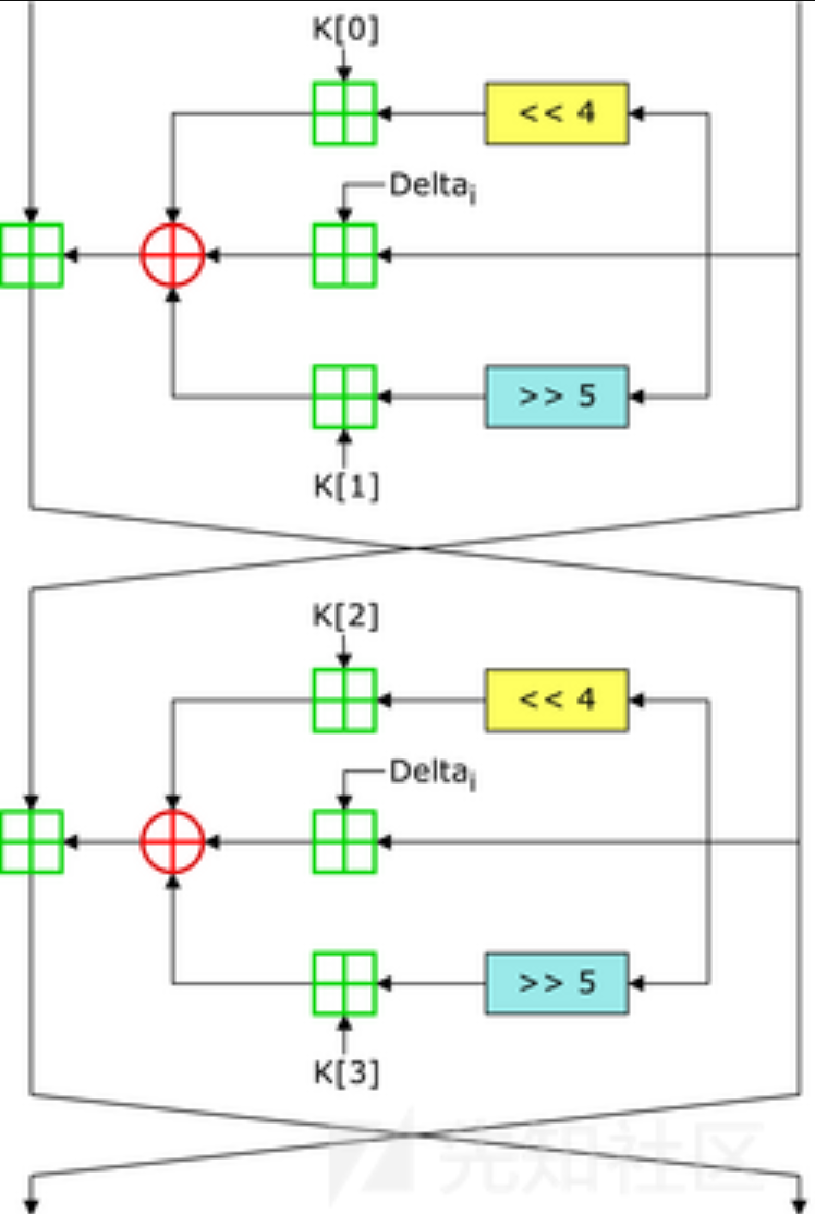 Tea的主加密部分为<<4,>>5,xor,循环32轮
