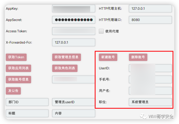 查userid可以得到部门id dept_id,这里只做了对部门发公告,实际操作中针对个人发公告效果不如直接加用户钓鱼好使。