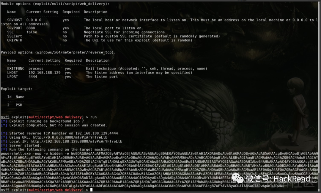 Step 2:启动MSF的exploit/multi/script/web_delivery模块