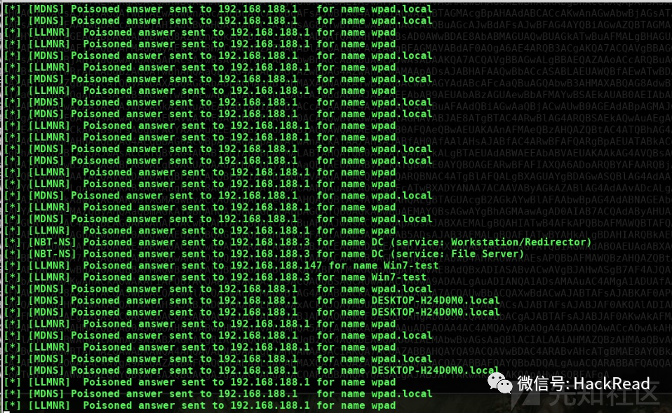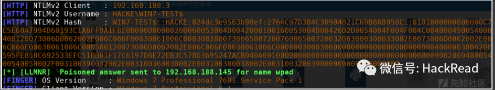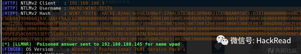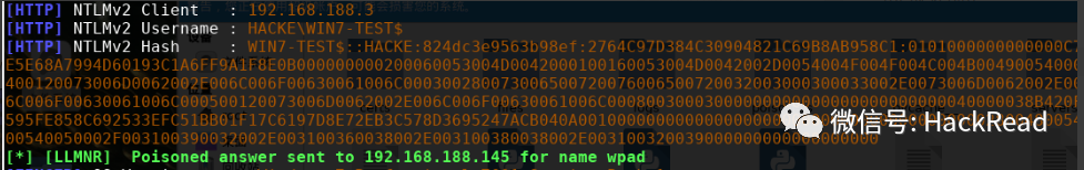 我们使用以下命令也可以在responder中获取到Net-NTLM Hash值: