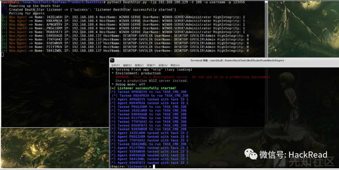 Step 2:启动Deathstar,ip为攻击机ip,为了接管agent