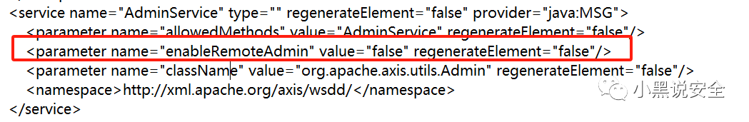 又发现AdminService的enableRemoteAdmin为false,所以思路就是xxe打ssrf axis。