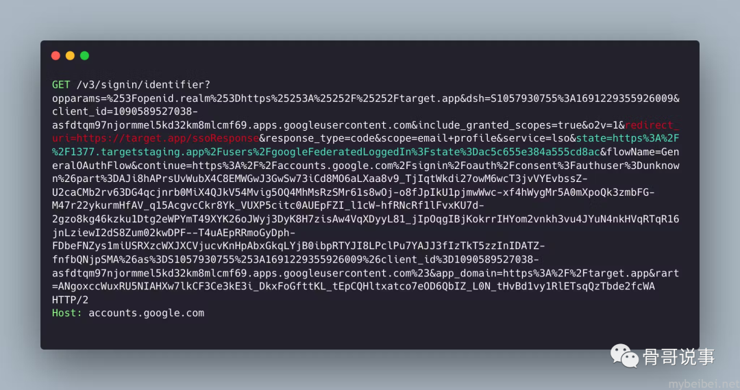 说干就干!再次仔细查看了流程,首先检查登录页面(在本例中为Google)接受的有效参数: