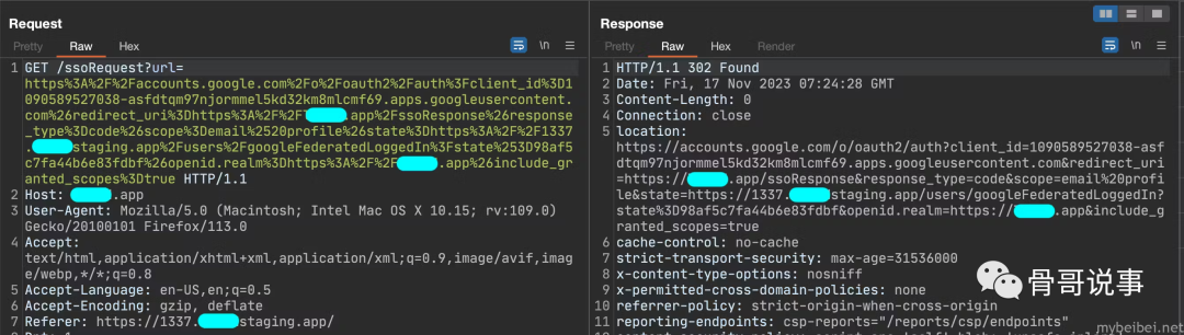 进行了各种测试后,Regex似乎完全固定在该公司的域内,看起来似乎很安全。即使找到打开的重定向,也无法通过更改 redirect_uri 参数将其重定向。