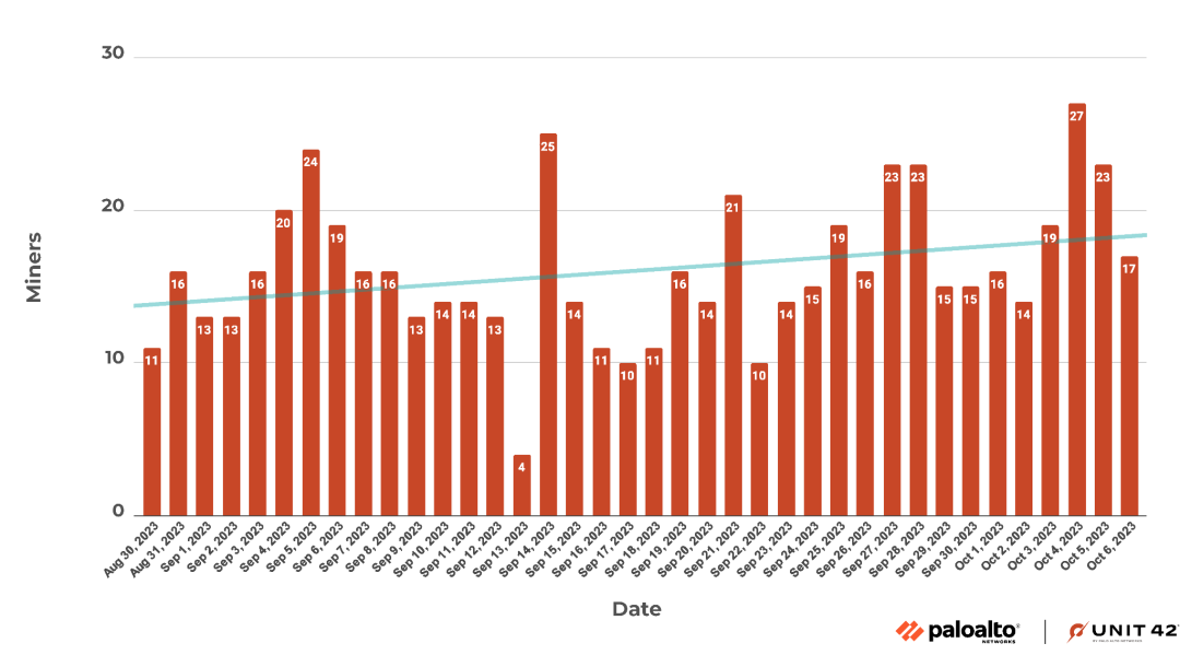 在2023年8月30日至2023年10月6日期间,总共出现了474个独立挖矿软件,研究人员可以将其解释为在此期间记录的474个独立的Amazon EC2实例执行挖矿。由于攻击者挖的是门罗币(Monero),这是一种包含隐私控制的加密货币,因此研究人员无法跟踪钱包来获得攻击者获得挖矿货币的确切数字。