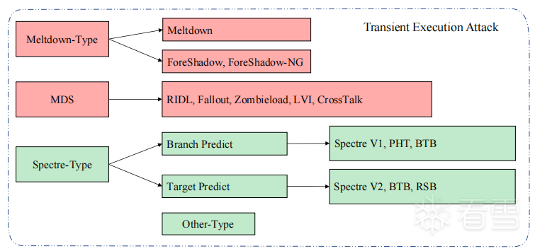 微体系结构中的侧信道攻击是一类利用程序的附带作用来泄露有关程序执行的信息的攻击。侧信道可以是缓存系统、分支预测器、电流等。例如,缓存系统可以用于泄漏有关程序内存访问模式的信息,分支预测器可用于泄露有关程序控制流的信息。微架构中大多数侧信道攻击的根本原因是共享资源,这是CPU性能优化的关键之一。C. 瞬态执行攻击