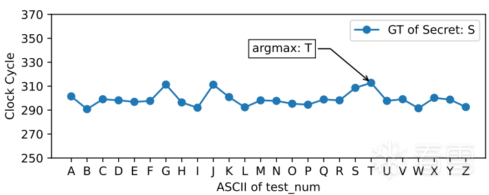 将 secret_addr 标记为秘密数据的地址。而offset就是secret_addr的偏移量。EFLAGS 指令是可以改变EFLAGS 寄存器的指令。Jcc 指令是可以受 EFLAGS 寄存器影响的指令。可用的指令集在下表中列出。使用 x86intrin.h 中的 __rdtsc 来获取 CPU 的时间戳计数器。secret_addr 是内核空间中的地址。并且攻击者以非特权模式运行,无法访问 secret_addr。偏移量是 secret_addr 的偏移量。在 TSX 交易中,攻击者会尝试通过 sub 指令访问 secret_addr。故障会导致瞬时执行。在瞬态执行期间,如果 *(secret_addr+offest) 中的秘密数据等于 i,则 ZF 可以设置为 1。瞬态执行后ZF会恢复为0。ZF 会被JZ 指令用来判断是跳转到相等标号还是不等标号。在实验中,如果*(secret_addr+offest)中的秘密数据等于i,上下文的执行时间会比*(secret_addr+offest)中的秘密数据不等于的上下文执行时间慢 我。max_time 是上下文的最大执行时间。argmax 是秘密数据,如下图中的分布所示。max_time 和 argmax 可用于解码秘密数据。A. 实验设置