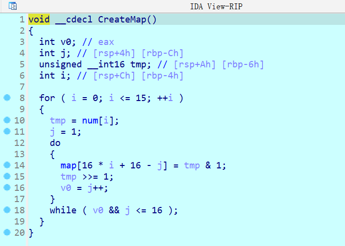 在CreateMap()函数后面设置断点