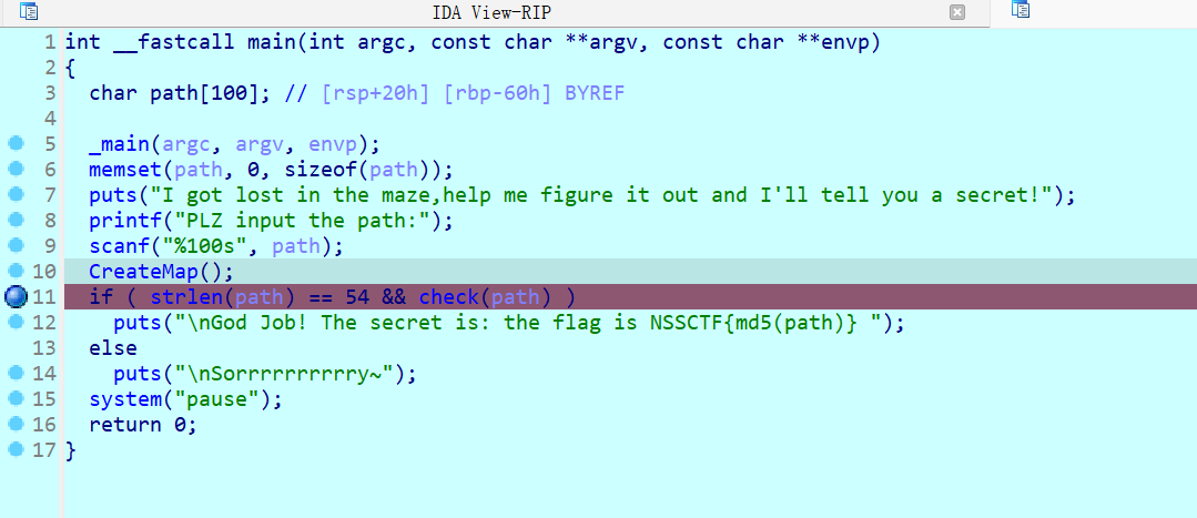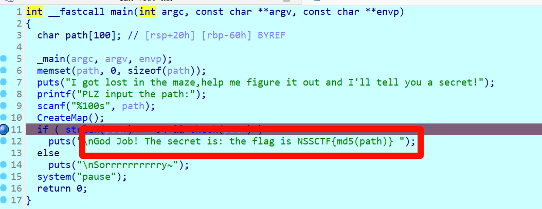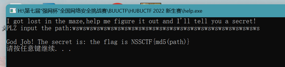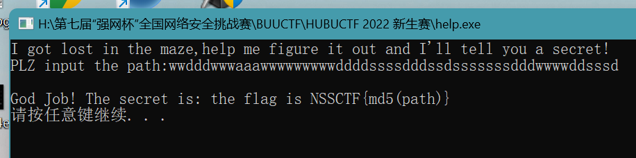 wwdddwwwaaawwwwwwwwwddddssssdddssdsssssssdddwwwwddsssdmain函数提到了,flag是path进行md5之后,加个NSSCTF{}就可以了。