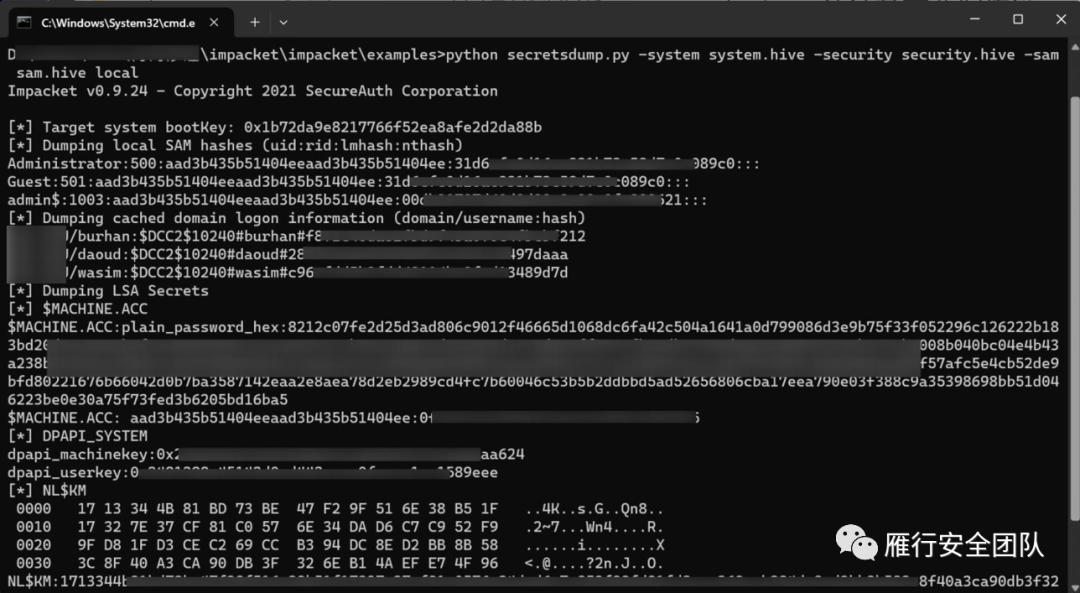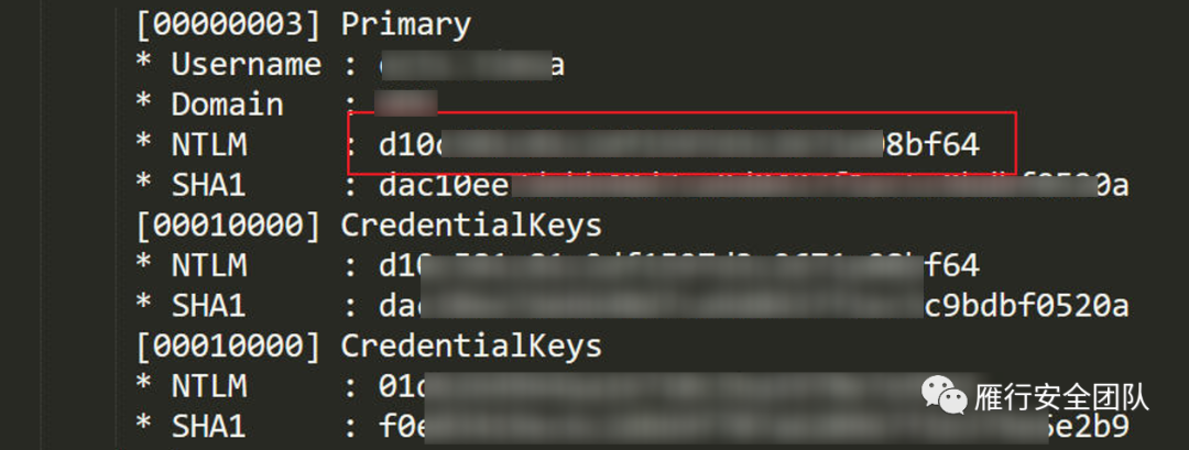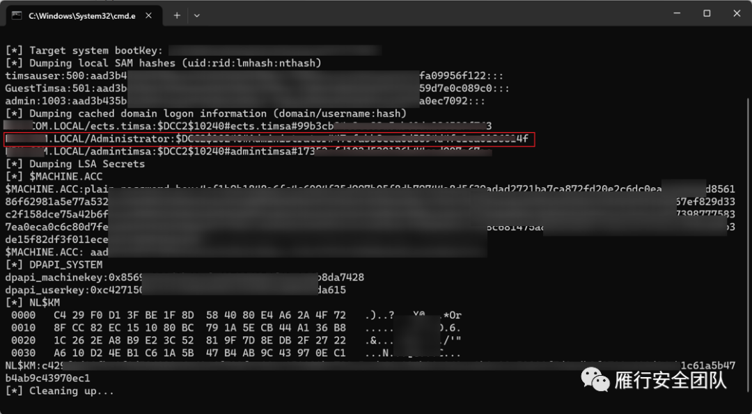 发现有administrator和三个域用户hash,域用户hash可以后续利用