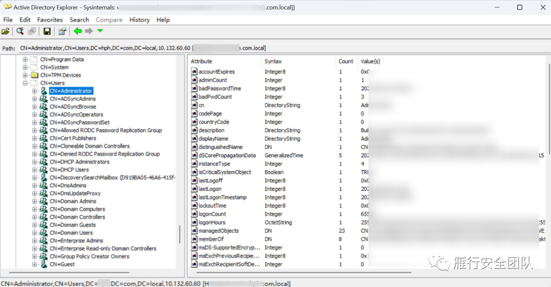 接下来的思路一是扫描下内网,尝试横向到内网其他机器找找有没有域管登过的;二是在ADexplorer找找看hash、密码啥的