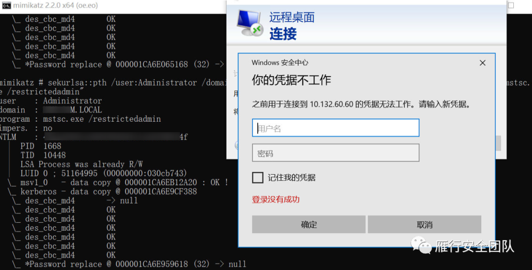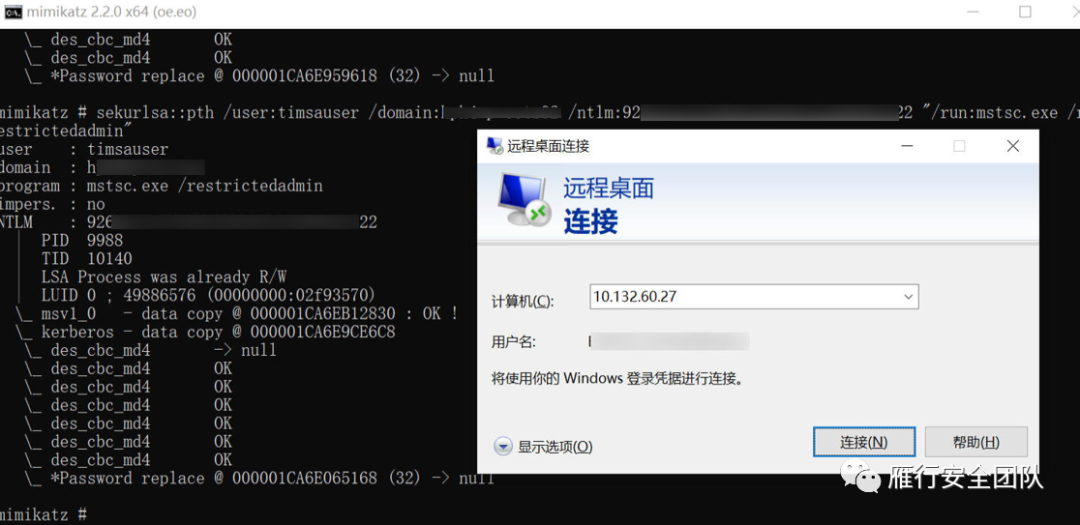 执行mimikatz后会弹出一个mstsc,输入目标地址即可