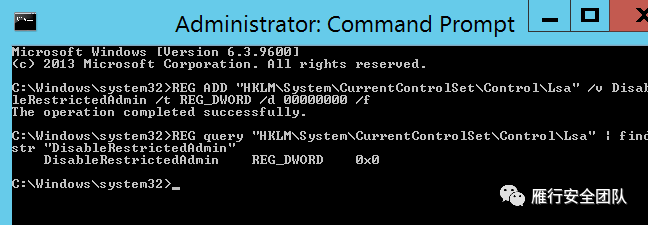 查看是否已开启 DisableRestrictedAdmin REG_DWORD 0x0 存在就是开启