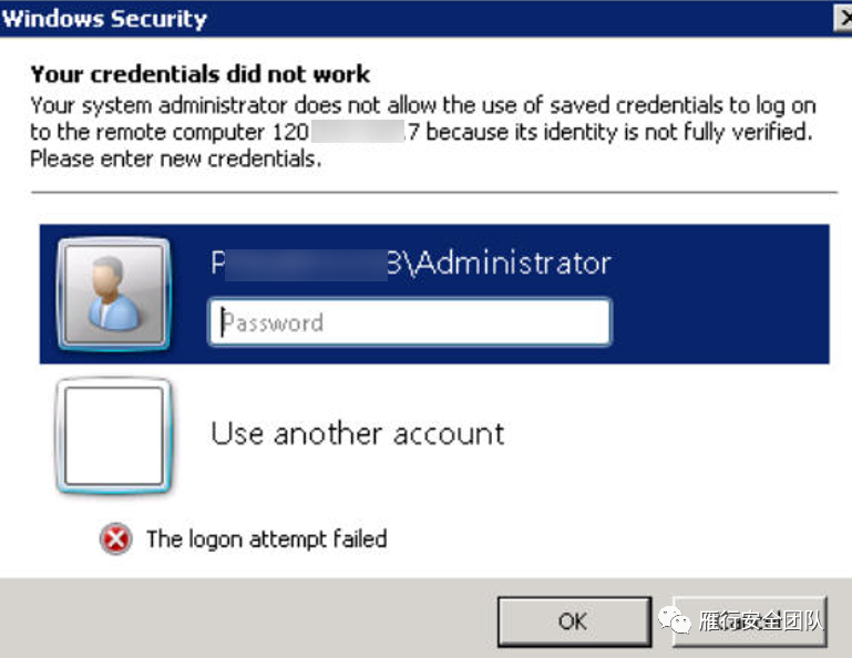 使用这个密码远程登录120.xxx.xx.7,不出意外登录失败