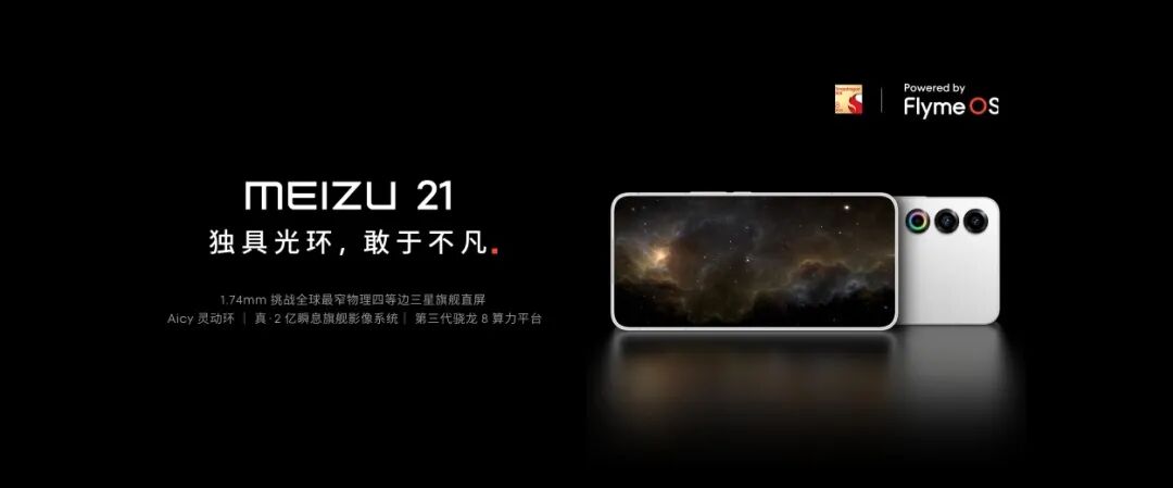 在昨日举行的 2023 魅族秋季无界生态发布会上,魅族 21 手机正式发布,共有锐意青、无界黑、灵动紫、魅族白四款配色,售价 3399 元起。魅族 21 延续魅族无界美学设计,边框宽度仅为 1.74mm,官方称挑战全球最窄物理四等边三星旗舰直屏。同时魅族 21 带来了更加智慧的「Aicy 灵动环」,配合 Aicy 助手,在来电、通知、充电、音量调节、游戏等场景下,带来更丰富的交互体验。影像方面,魅族 21 搭载了真·2 亿瞬息旗舰影像系统,后置 2 亿像素主摄,支持 OIS 光学防抖;以及 1200 万像素超广角镜头和 500 万像素景深镜头。魅族 21 搭载骁龙 8 Gen 3 处理器,官方称,在魅族冰界降温技术、OneMind 10.5、37345mm² 散热堆叠总面积的加持下,实现了不一样的性能及续航平衡。高德地图升级智能信号灯服务