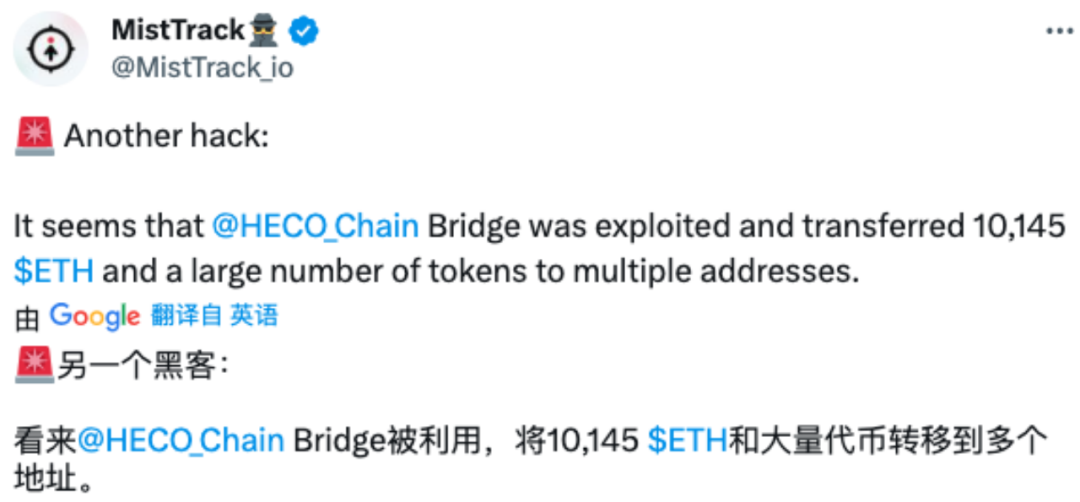2023 年 11 月 22 日,据慢雾安全团队监测,HTX(原 Huobi)的热钱包及 Heco 跨链桥遭攻击,损失达 1.133 亿美元。