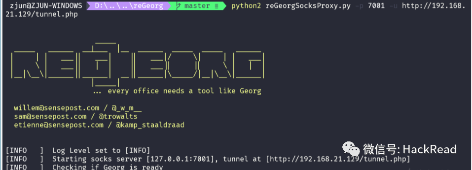 python2 reGeorgSocksProxy.py -p 7001 -u http://url/tunnel.php