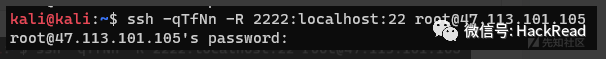 ssh -qTfNn -R 2222:localhost:22 JumpHost