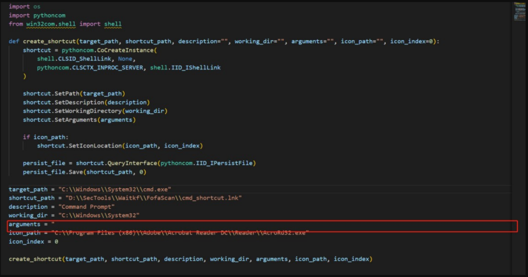 首先是对快捷方式的参数的隐藏,这里笔者做了一个简单的 python 脚本作为例子,具体展示在参数这块