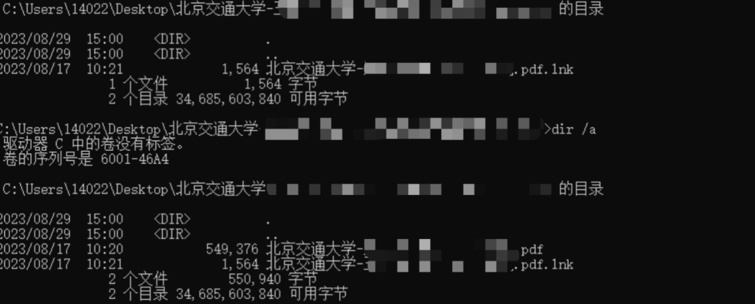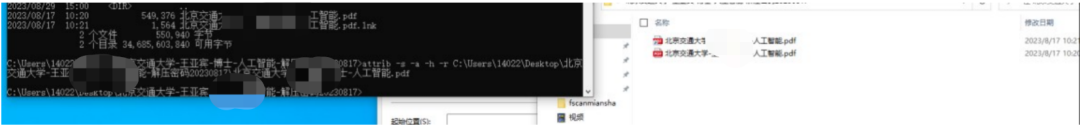 attrib -s -a -h -r C:\Users\14022\Desktop\北京交通大学-xxxx\北京交通大学-xxxx.pdf