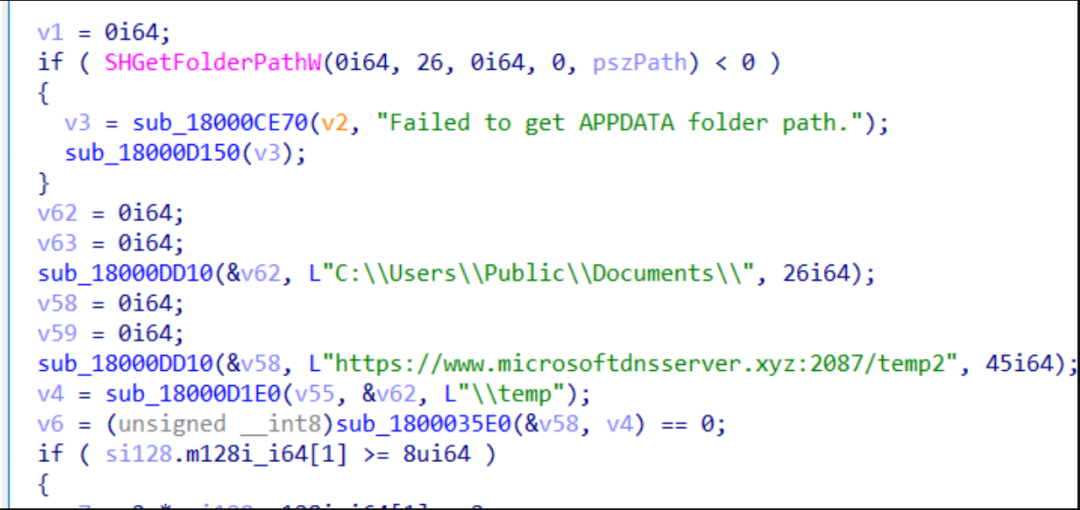 继续往下摸索看到了该远控指向的地址www.microsoftdnsserver.xyz:2087,这个丢微步的云沙箱也可以解析分析到,全局搜索
