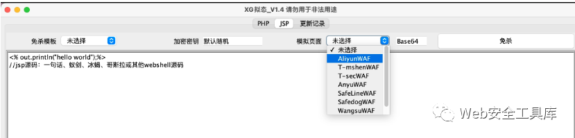 1、选择PHP、JSP页面,选择免杀模板,加密密钥可自定义(不重要)