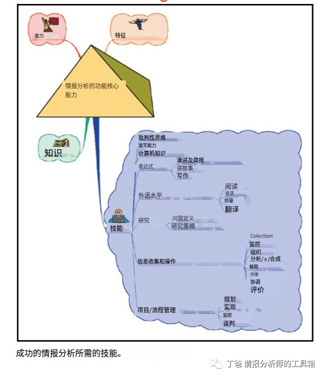 虽然天赋和相关能力可能源于分析师的基因构成,但技能代表了基于特定能力或一组能力的学习专长或熟练程度。如图所示,成功的情报分析至少需要八种技能。