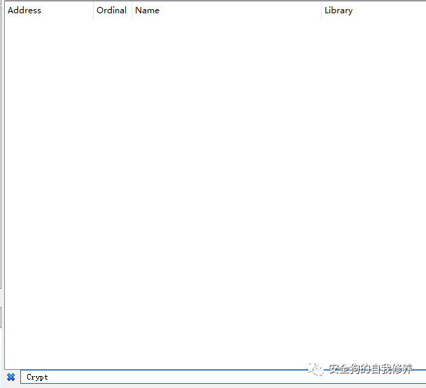 由于我们已知为勒索样本,所以尝试搜索Crypt开头相关的加密函数,没有找到相关API。推测该API需要后续执行解密动态载入