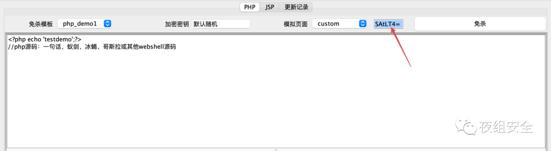 1、选择PHP、JSP页面,选择免杀模板,加密密钥可自定义