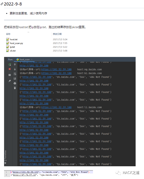 把域名放在host.txt 把ip放在ip.txt,跑出的结果存放在ok.txt里面。