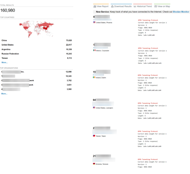 然而在现实中,场景可能往往不同,需要完全不同的分析。运营商不愿意在N3接口上部署IPsec,因为它耗用大量CPU资源,降低了用户流量的吞吐量。此外,由于用户数据被认为在应用层受到保护(借助额外协议,比如TLS即传输层安全),一些人认为IP安全是多余的。有人可能认为,只要基站和分组-核心符合具体要求,就不会出现异常情况。此外,有人可能还认为,对于所有可靠的系统而言,都需要进行完整性检查,以发现任何明显的异常。然而之前的研究表明,全球各地的许多N3节点(比如UPF)暴露在互联网上,尽管不应该如此。这将在以下的章节中介绍。