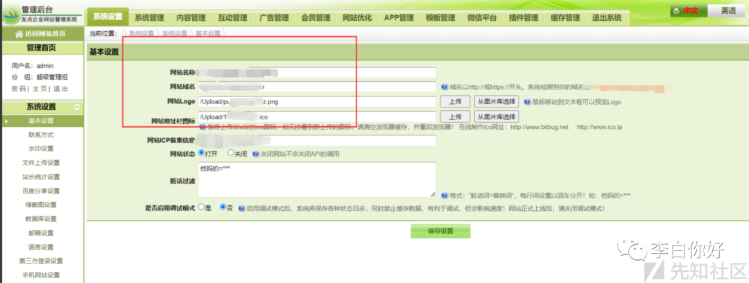 并且所有密码都是MD5加密,cmd5能查到所有密码,登录后台进行分析,在基本设置功能内看到了SEO内容,