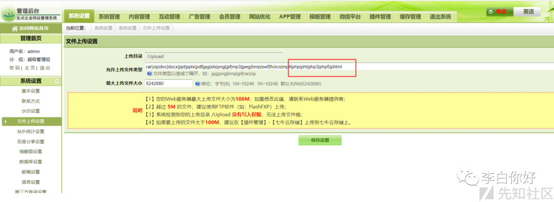 可以看到被添加php、php3等后缀,后台可以直接任意文件上传,分析服务器文件也发现了大马: