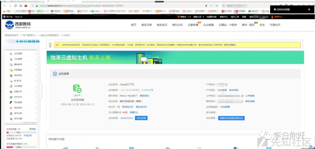 通常购买虚拟主机服务后,虚拟主机控制台会提供一个FTP地址和FTP账号密码,开发把源码上传至虚拟主机FTP服务器上进行网站部署,然后在主机管理页面绑定域名就能访问网站业务。整个部署过程虚拟主机服务商仅提供FTP账号密码进行文件管理,无法对网站服务器进行管理控制。