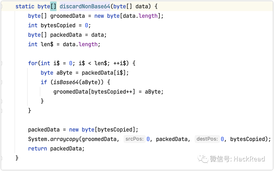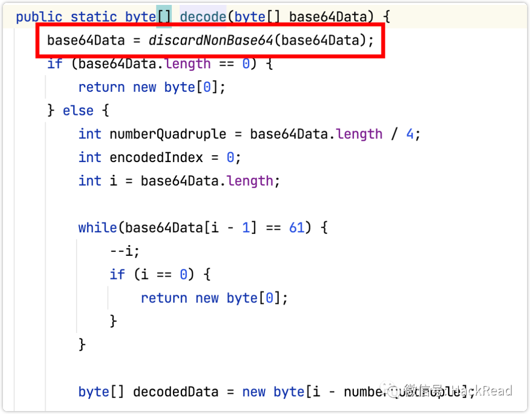 如图,在shiro解码base64字符串的过程中,会调用discardNonBase64方法去除掉非Base64的字符