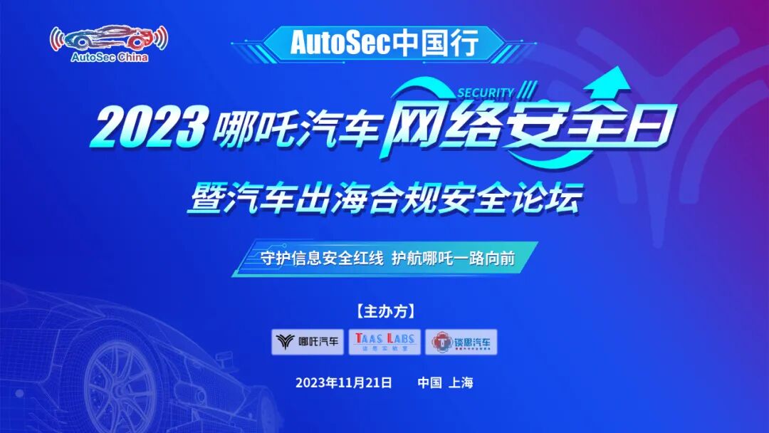 11月21日,哪吒汽车联合谈思实验室联合主办的“2023哪吒汽车网络安全日暨汽车出海合规安全论坛”在沪圆满落幕。此次论坛邀请了十多位行业头部安全专家与各杰出供应商伙伴,围绕汽车出海安全合规、安全研发解决方案、安全合规测试等方面内容,为安全厂商提供汽车安全思路启发,进一步夯实行业伙伴的网络安全和数据安全建设,为汽车出海合规保驾护航,并进一步让安全意识深深注入汽车品牌、供应商伙伴及用户心智之中!