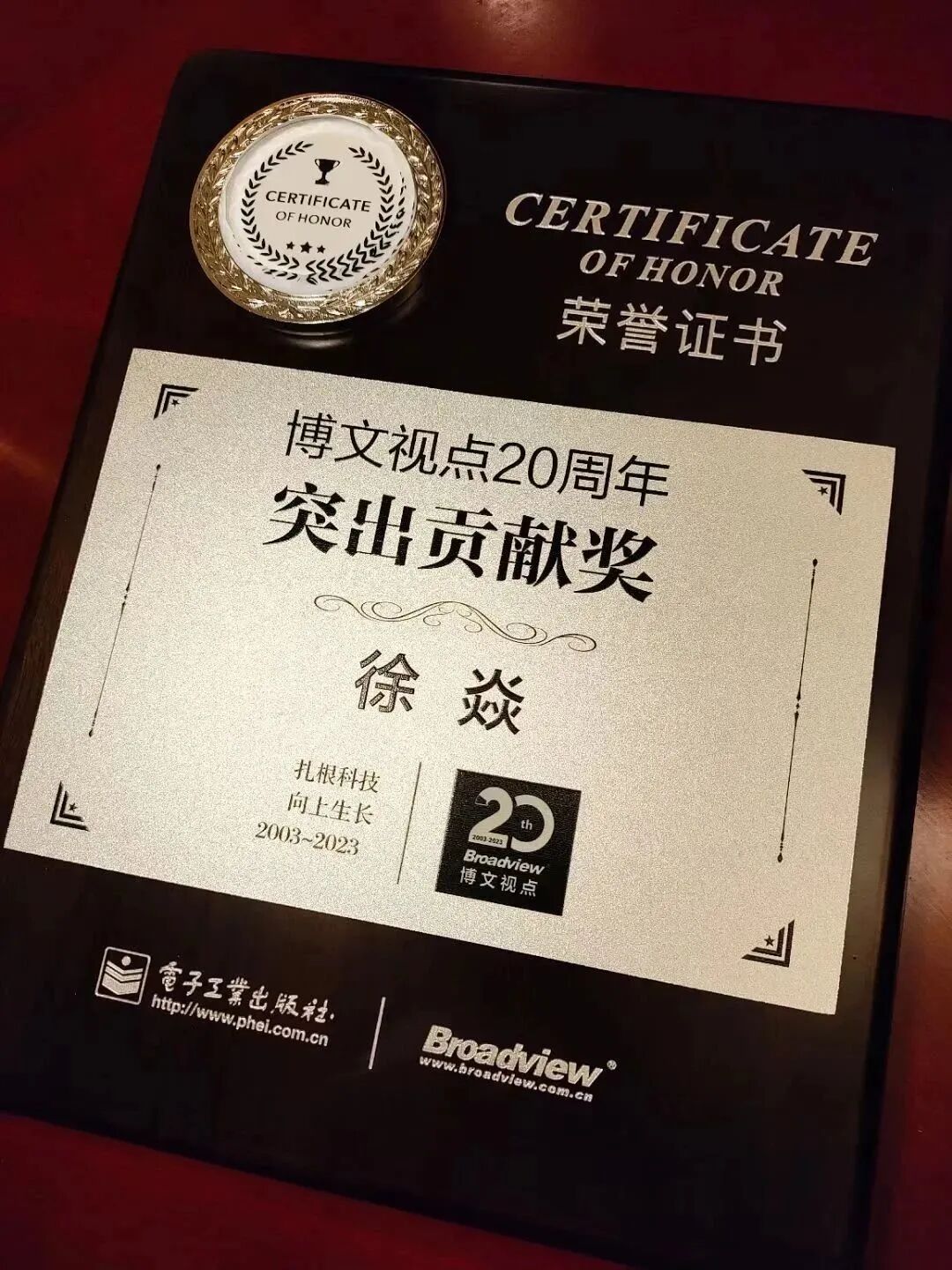 12月3日,电子工业出版社·博文视点20周年庆典在北京举行。MS08067安全实验室徐焱老师荣获博文视点“20周年突出贡献奖”,该奖项为了奖励博文视点自2003年创立至今20年来对博文视点做出过突出贡献的18名作者。