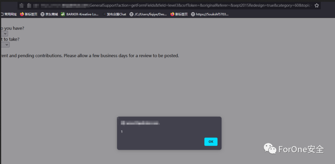 4. 访问URL, 确认XSS荷载正确插⼊ https://www.???.com/GeneralSupport?参数1=…&参数2=…&参数3=…