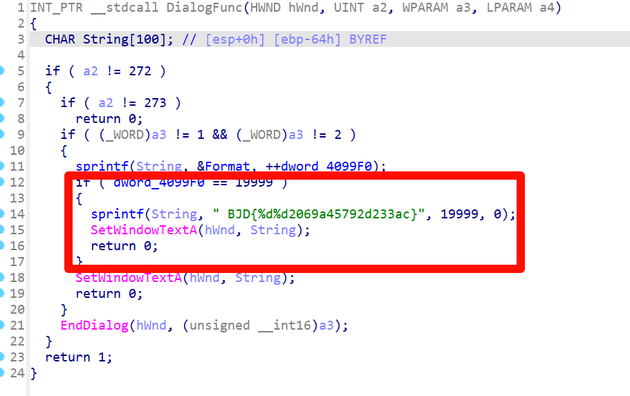 sprintf(String, " BJD{%d%d2069a45792d233ac}", 19999, 0);sprintf