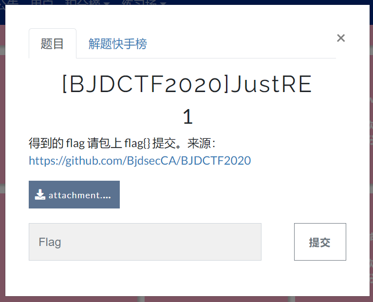 https://buuoj.cn/challenges#[BJDCTF2020]JustREhttps://files.buuoj.cn/files/b02a88388c5a572e39c2d40b8e9136fc/attachment.exe首先,查壳