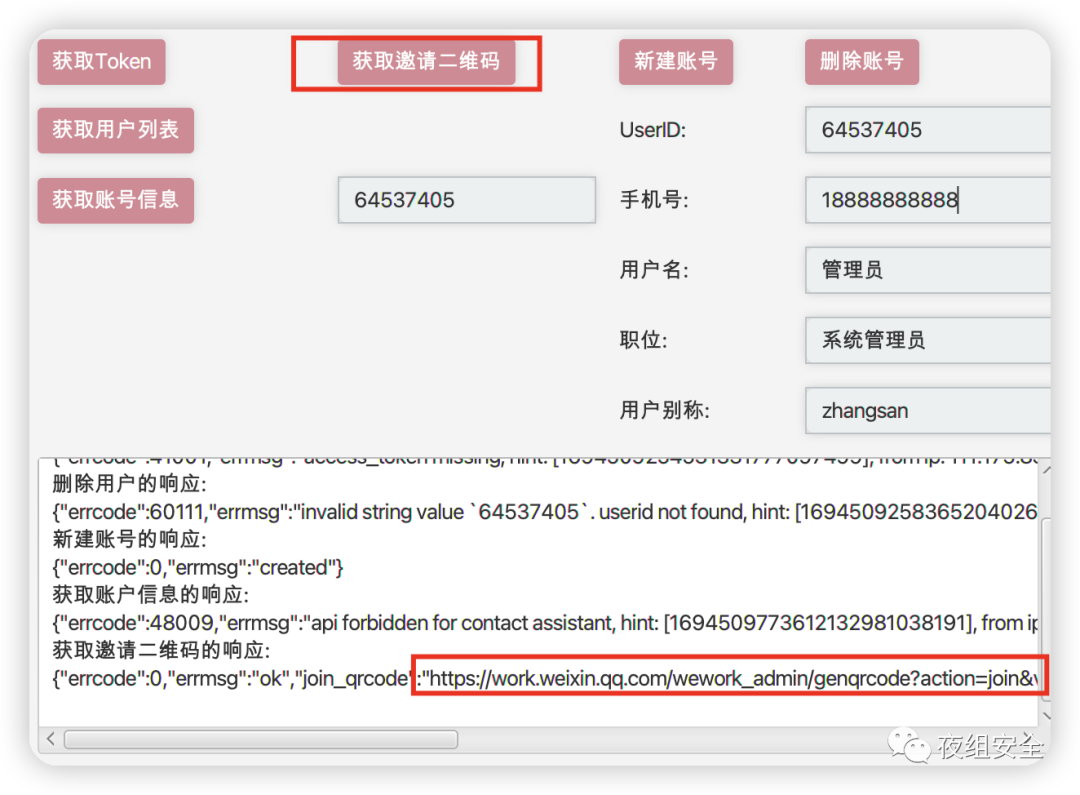 获取管理员信息,得到管理员userid。